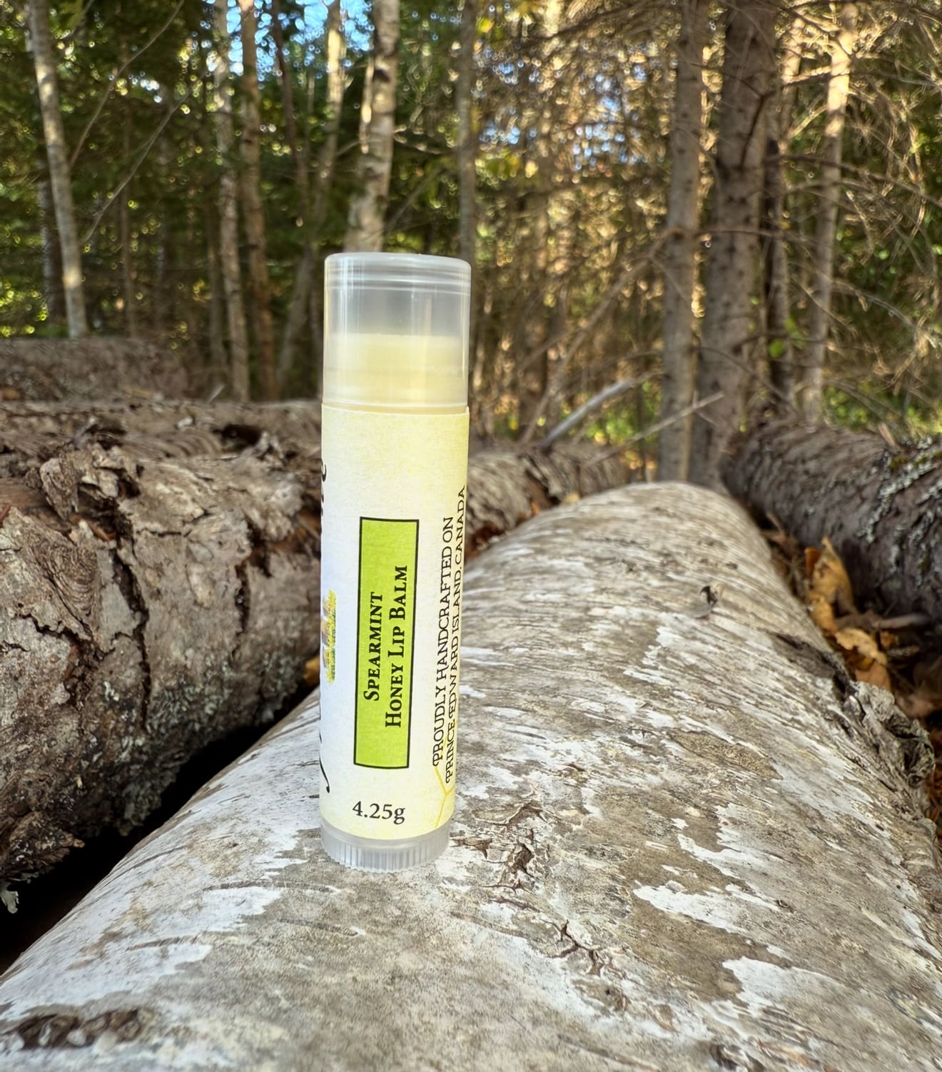 Our Spearmint Honey Lip Balm is made using the following ingredients: shea butter, apricot kernel, beeswax, avocado oil, jojoba oil, essential oil of spearmint, vitamin E and did we say honey, lots of honey!